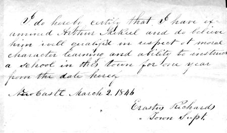do hereby certify that I have examined Arthur McKeel and do believe him well qualified in respect to moral character learning and ability to