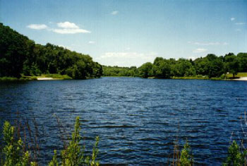 Taken from the dam on the south side of the lake, this photo illustrates the "sparkle" that gave the lake its name. |